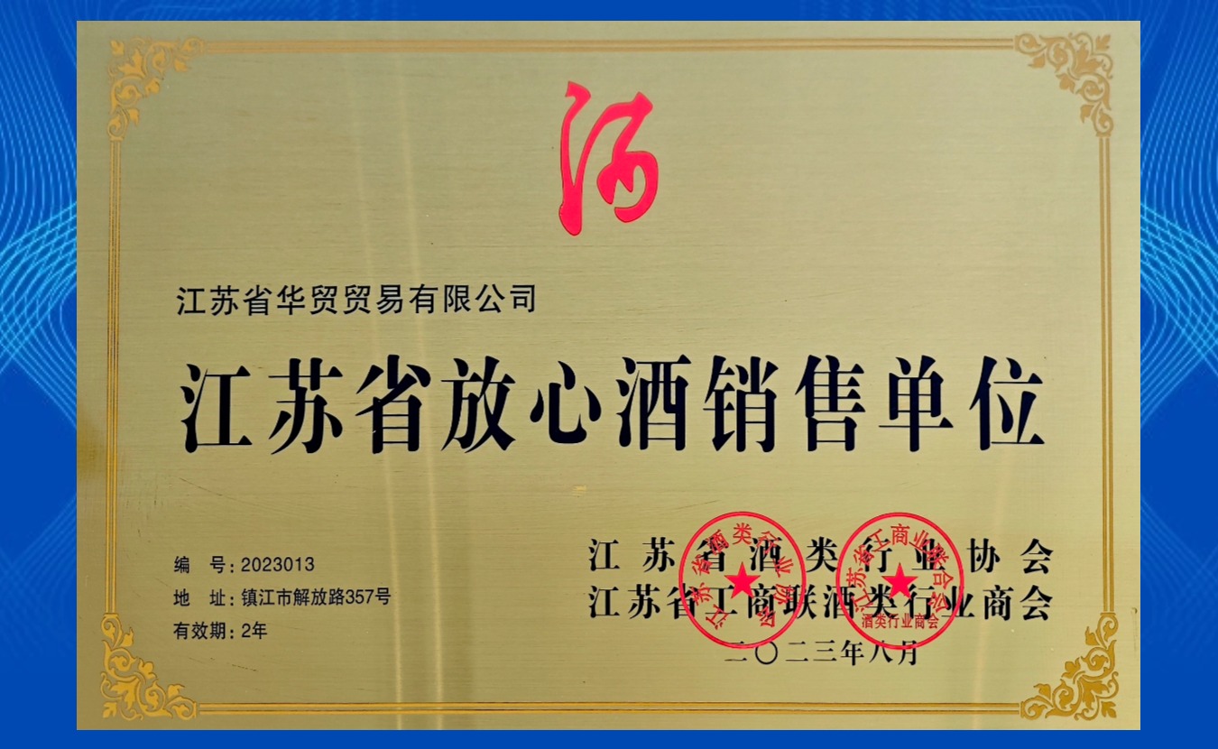 2023年,江蘇華茂獲江蘇省酒類行業(yè)協(xié)會(huì)、江蘇省工商聯(lián)酒類行業(yè)商會(huì)聯(lián)合聯(lián)合授牌“江蘇省放心酒銷售單位”